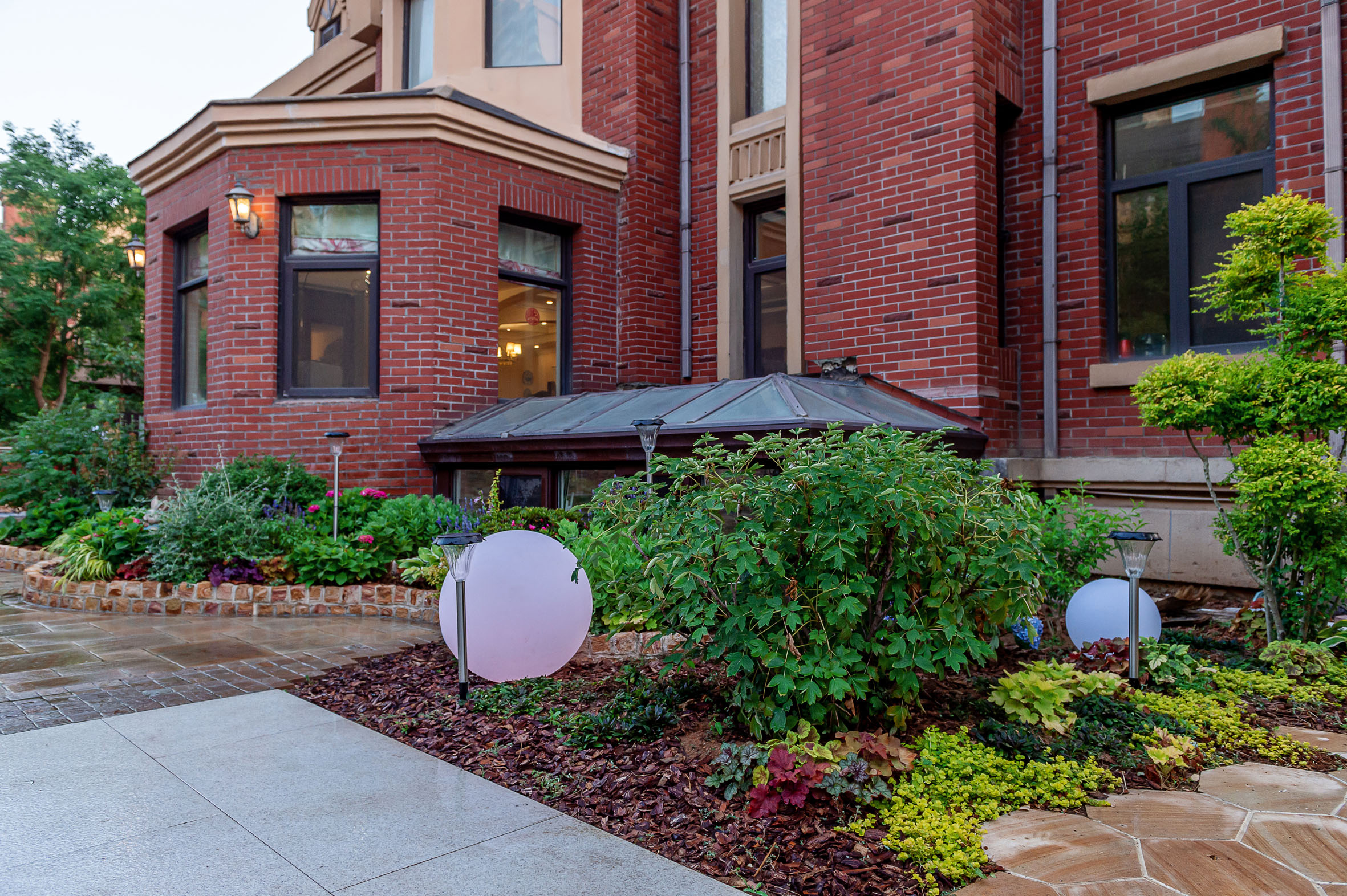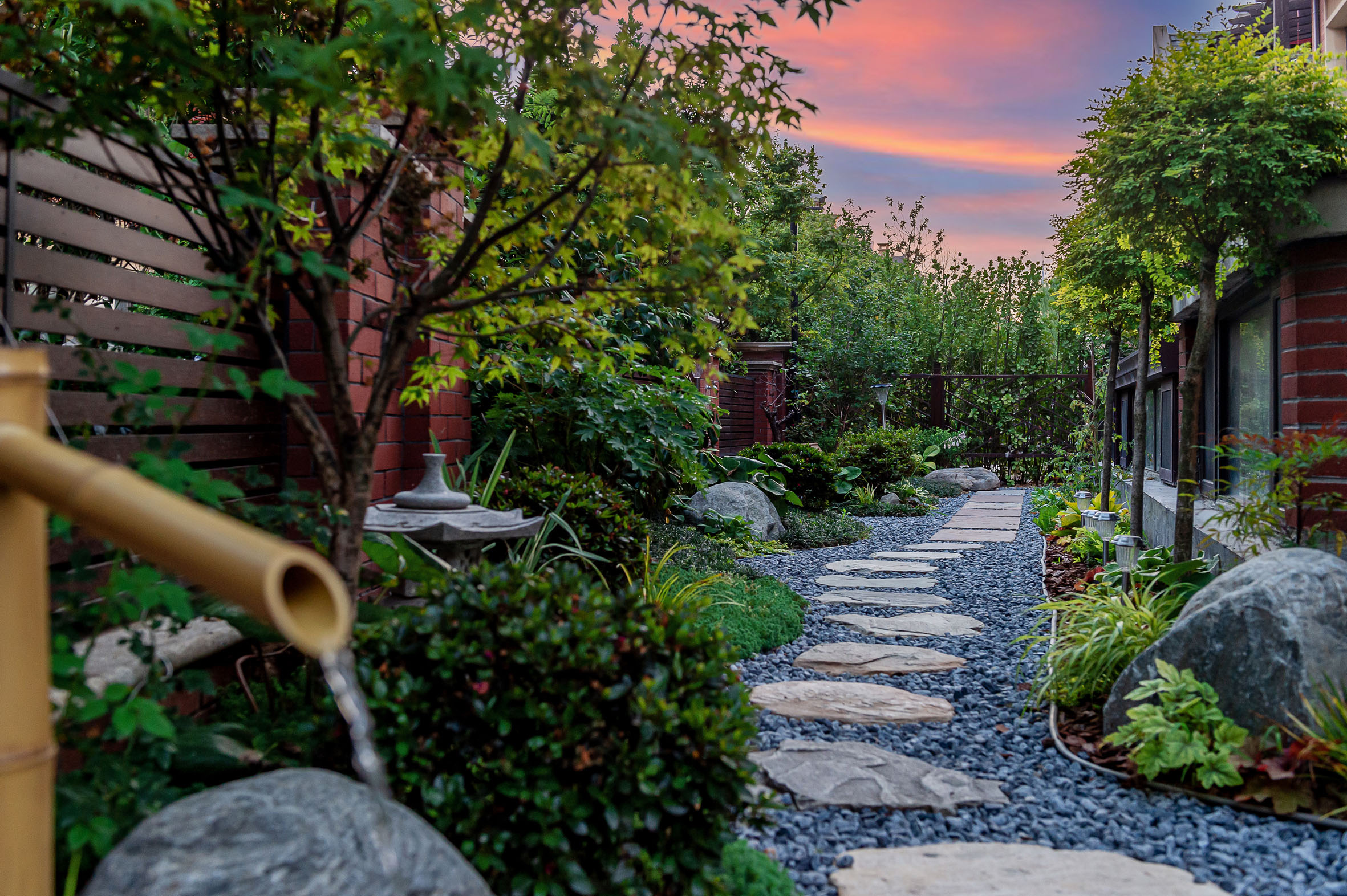 轉(zhuǎn)角處的南院以日式水缽、石燈、自然汀步等元素打造日式自然景觀,讓原本荒棄的角落重新煥發(fā)生機。日本紅楓、耐冬、大葉吳風(fēng)草、礬根、杜鵑球等植物營造富有四季變化的綠化組合。在植物和光影的交織中漫步花園,感悟自然和生活的美好。