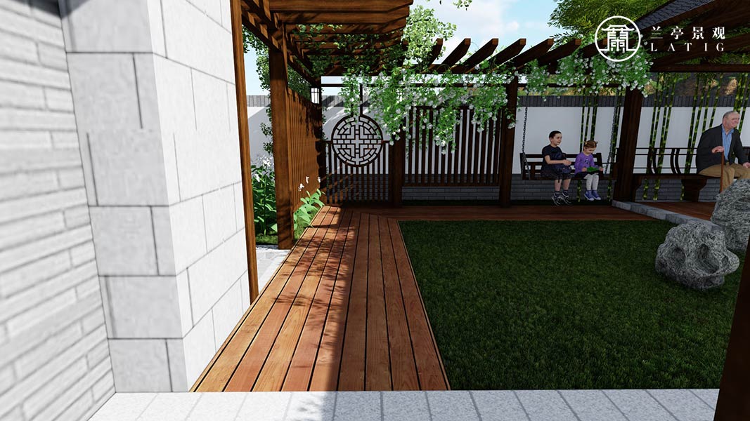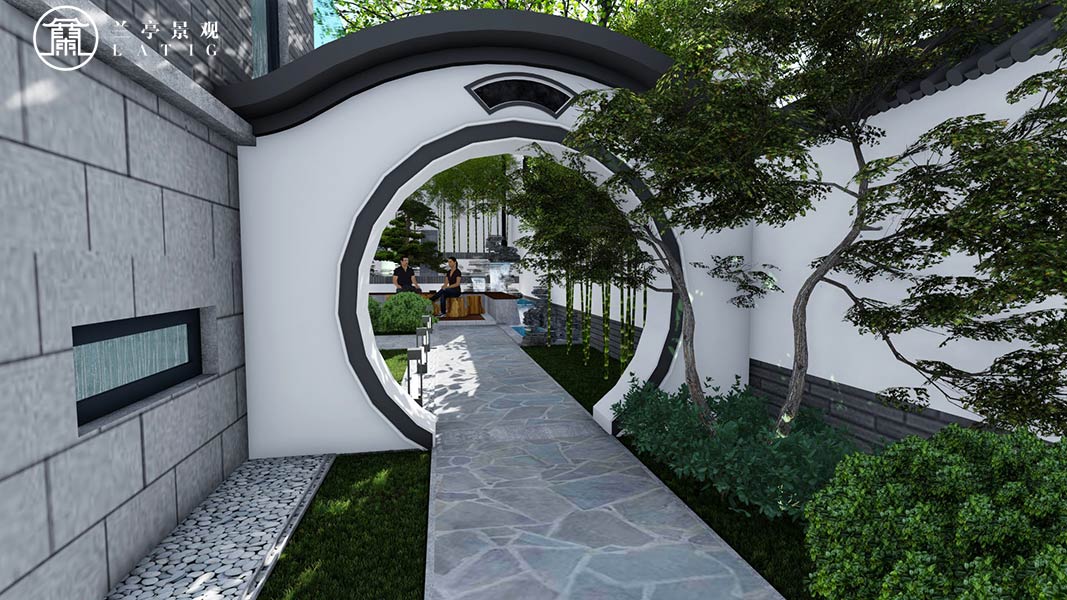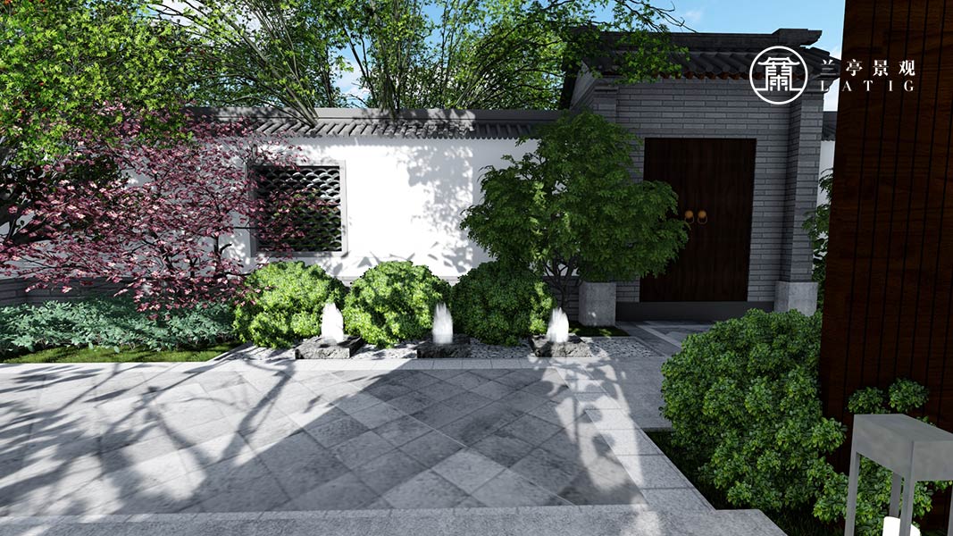 屬性:庭院效果圖 庭院面積:500-1000㎡ 庭院設計風格:新中式