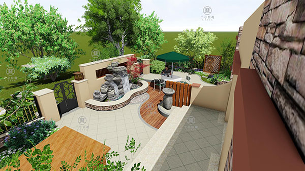 水是庭院不可缺少的元素,中心休閑區無不圍繞著水景而布置。小而精致的庭院中,水即靈魂。在假山與水池的碰撞中,聽著流水潺潺,讓我們的心回歸大自然。