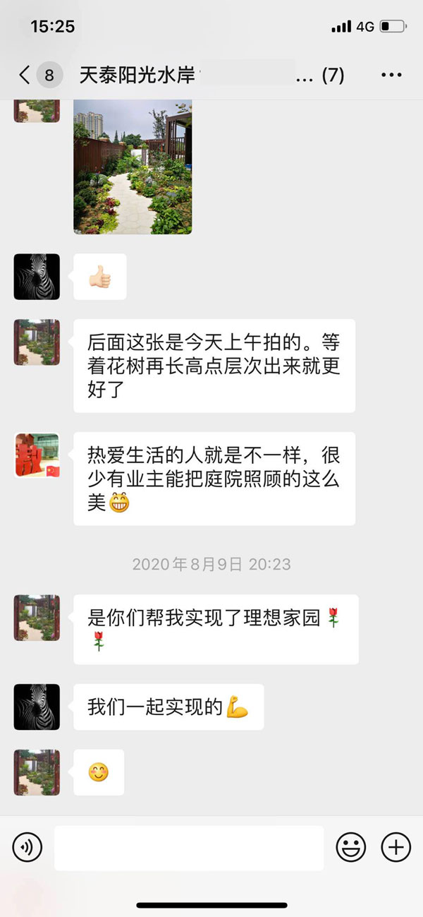 客戶的認可,是對我們工作莫大的鼓舞 來源: 點擊次數:3781 發布時間:2020/8/10 15:04:03 客戶的認可,是對我們工作莫大的鼓舞。打造美好花園,筑就幸福生活。歡迎來蘭亭景觀體驗我們不一樣的服務。